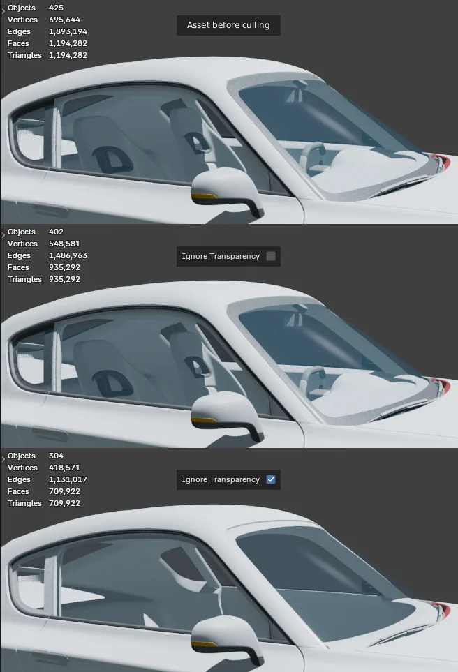 Ignore Transparency turns off this default behavior, so the interior of the car could then be culled.