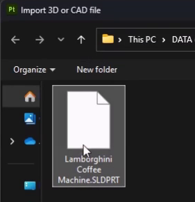 Select 3D or CAD Filebutton.Browse for the file to be imported. For a list of supported formats see Format & Material Support.