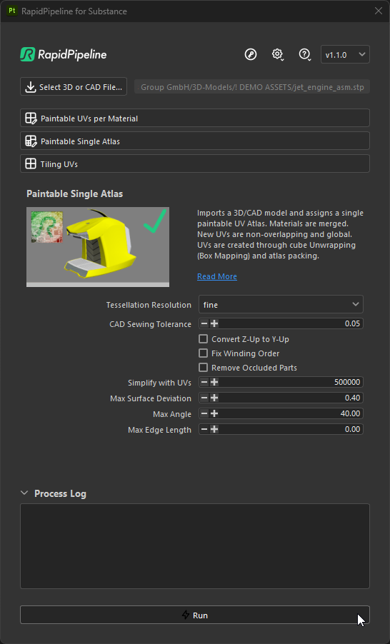 The plugin runs on a powerful 3D data optimization and automation toolset, more about it here: 3D Processor Reference.